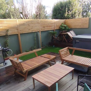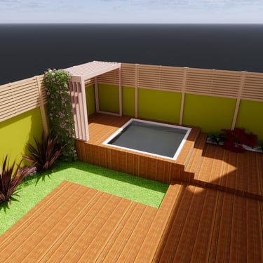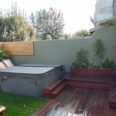 SPA, terrasse en bois exotique, brise-vue, plantations.... Nous avons créé un véritable havre de paix dans un espace autrefois vide!