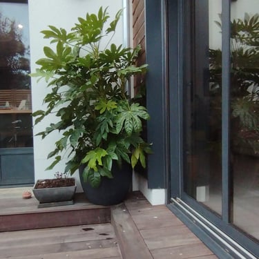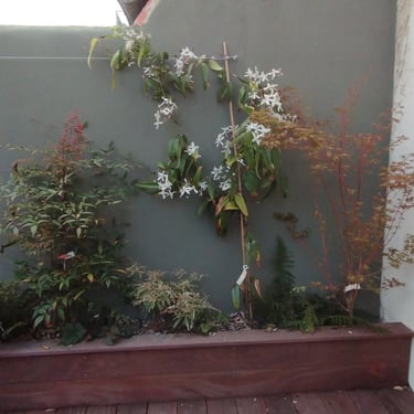 Les végétaux d'aspect exotique, des plantes grimpantes, des vivaces et arbustes ont été soigneusement sélectionnés pour ressortir sur le fond vert ou la palissade et offrir des belles touches de couleurs en toute saison!