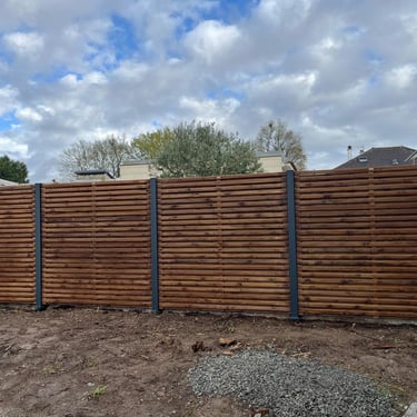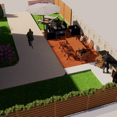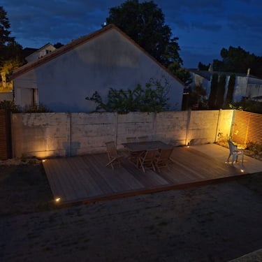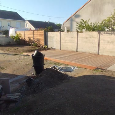 Côté Nord, une grande terrasse en Muiracatiara, ainsi qu'une attenante en Grès Cérame pour la cuisine! De nouvelles clôtures en mix alu / bois ainsi qu'un terrain de pétanque qui occupe désormais une zone autrefois difficilement exploitable car trop à l'ombre!