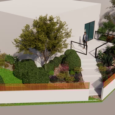 Une maison surélevée qui ne permet pas de profiter de la partie avant du jardin. Un espace difficile d'entretien.