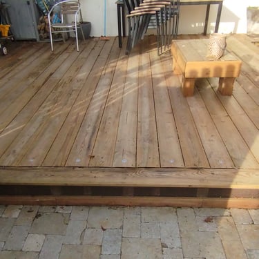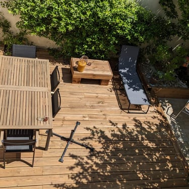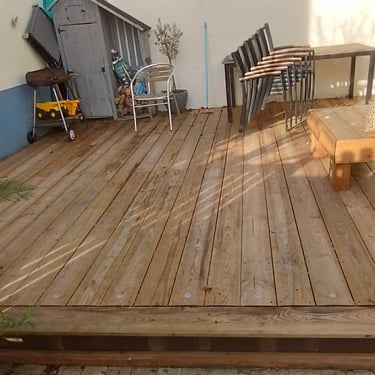 A l'origine, place de stationnement, elle avait été transformée en espace terrasse par les anciens propriétaires, mais le bois de cette dernière était complètement rongé car en contact direct avec la terre.