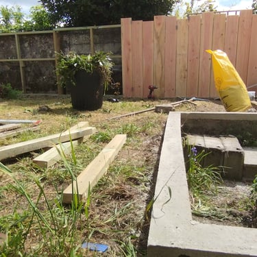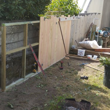 Une ancienne palissade, commencée il y a des années et... jamais terminée! Qu'à cela ne tienne, nous avons pris en main le dossier et fini ce qui aurait dû l'être depuis longtemps!